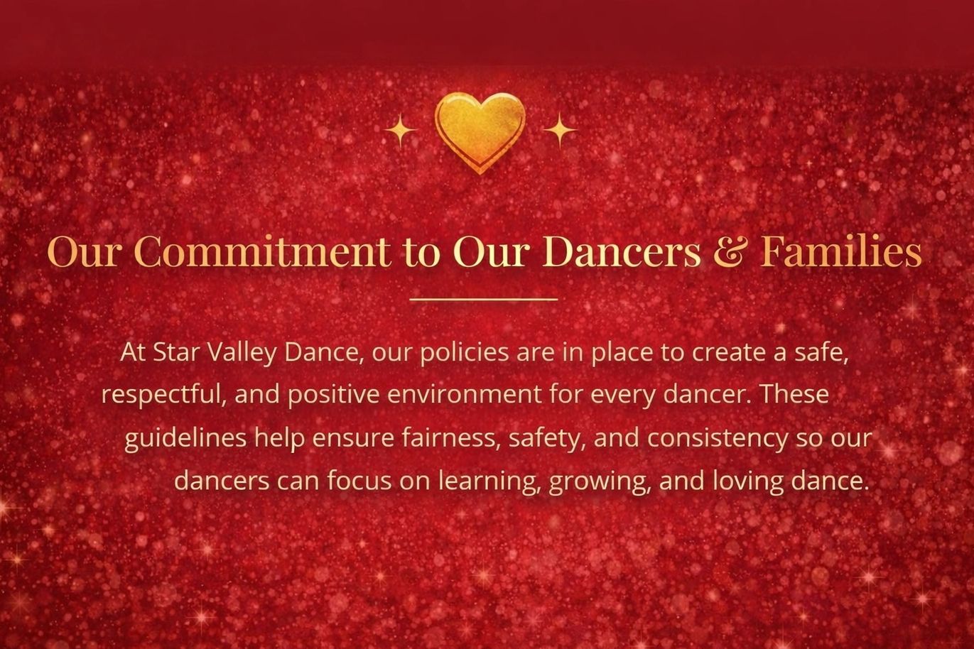 Star Valley Dance has a ZERO TOLERANCE policy towards bullying inside or outside of the studio. If you or your dancer are bullying another dancer or family from the studio, you will be asked to leave.